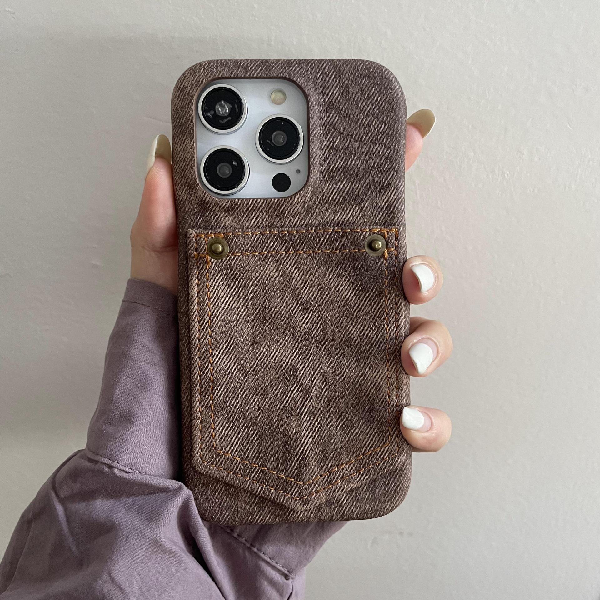 Denim Pocket Card Holder Suitable for Apple 16Promax Mobile Phone Case Iphone15 Retro All-Inclusive 14 Simple Card Holder