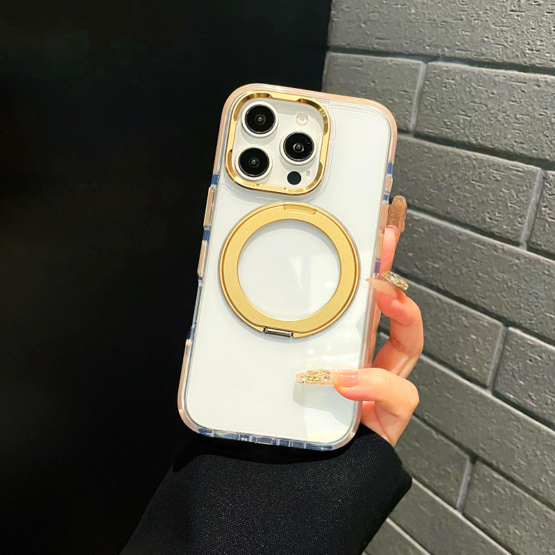 Ice Crystal Two-Color Magnetic Stand Suitable for Apple 16Pro Mobile Phone Case New 15 Anti-Fall Protective Cover Iphone17