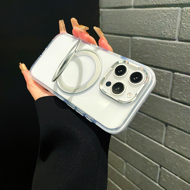 Ice Crystal Two-Color Magnetic Stand Suitable for Apple 16Pro Mobile Phone Case New 15 Anti-Fall Protective Cover Iphone17